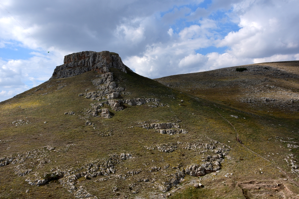 Siamo quasi in alto quando gli ultimi della fila arrivano nell’avvallamento. Da lontano ci guardano scettici; è evidente che non hanno alcuna intenzione di salire. Proseguiranno fino all’arrivo seguendo la sterrata che costeggia il rilievo.